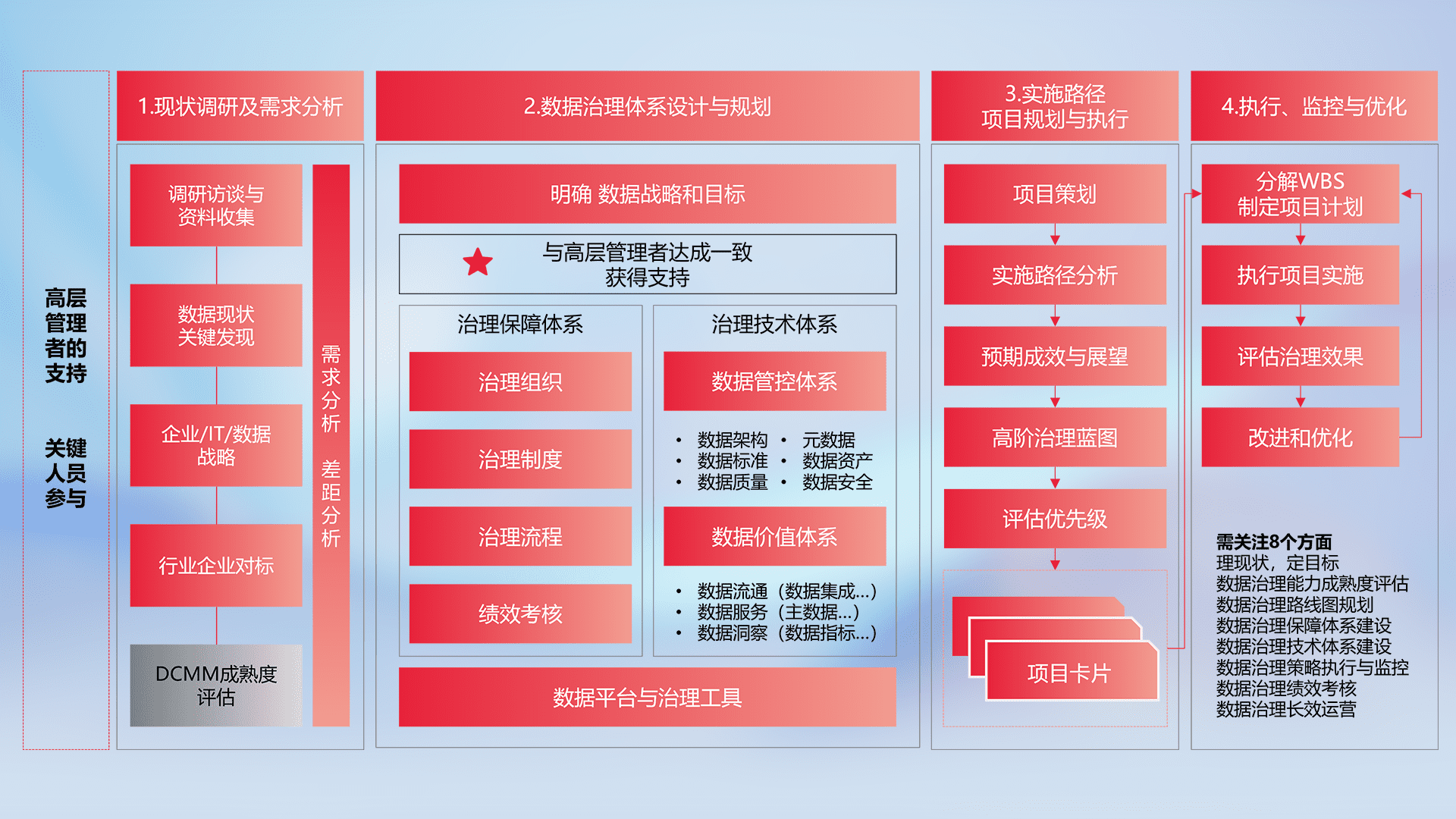 制定并执行统一的数据标准,,,规范数据定义和格式,,消除冗余和不一致性,,,实现跨部门和跨系统的数据一致性,,,,为企业提供标准化的数据基础。。。。